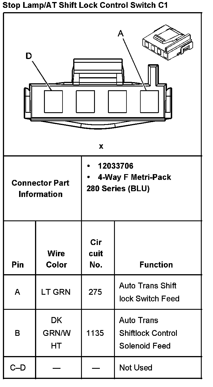 Stop Lamp/AT Shift Lock Control Switch C1: