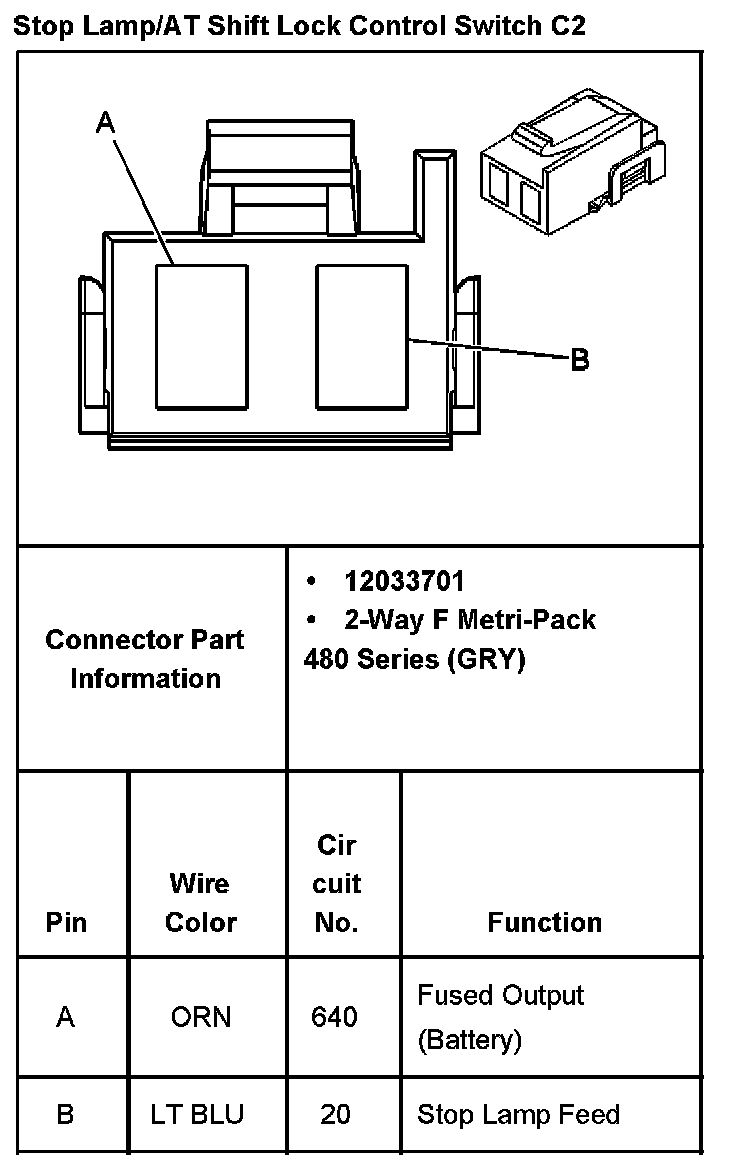 Stop Lamp/AT Shift Lock Control Switch C2: