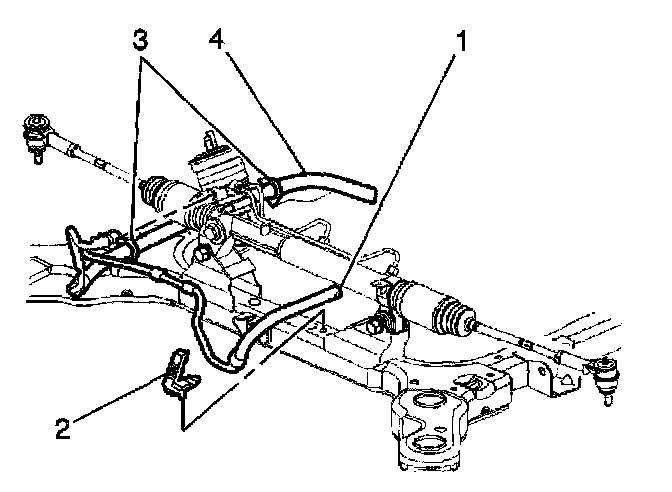 4. Remove the power steering return hose (4) from the power steering gear.