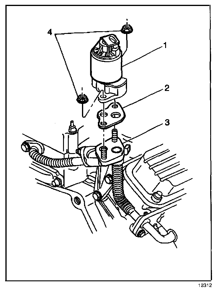 1. Install a new gasket (2) on the EGR inlet pipe.