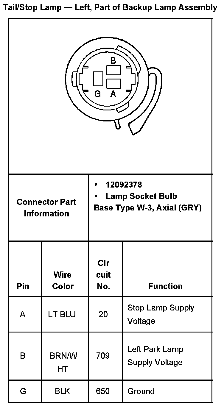 Tail/Stop Lamp - Left, Part Of Backup Lamp Assembly: