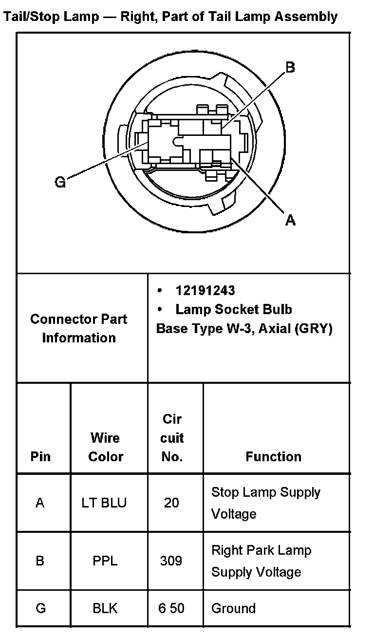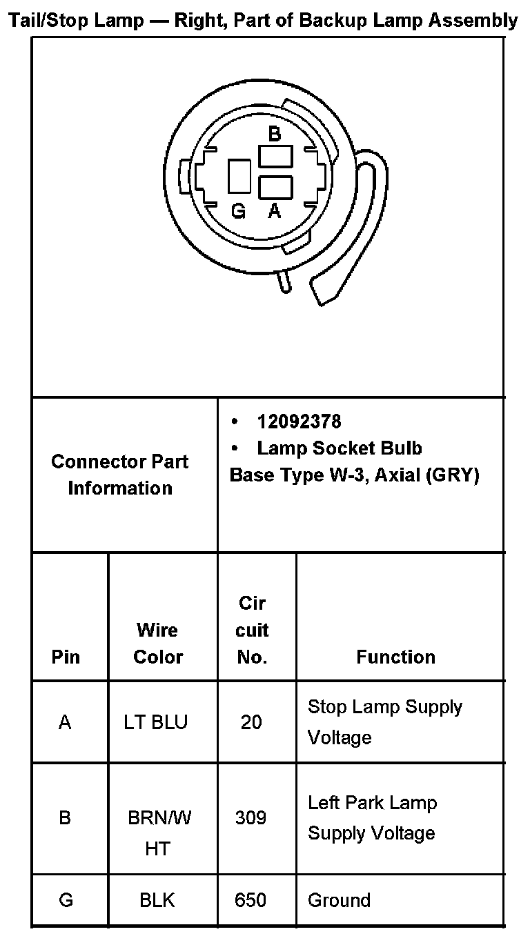 Tail/stop Lamp - Right, Part Of Backup Lamp Assembly: