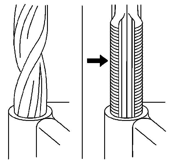 IMPORTANT: Refer to the thread repair kit manufacturer's instructions regarding the size of the drill and tap to use. Avoid any buildup of chips. Back out the tap every few turns and remove the chips.