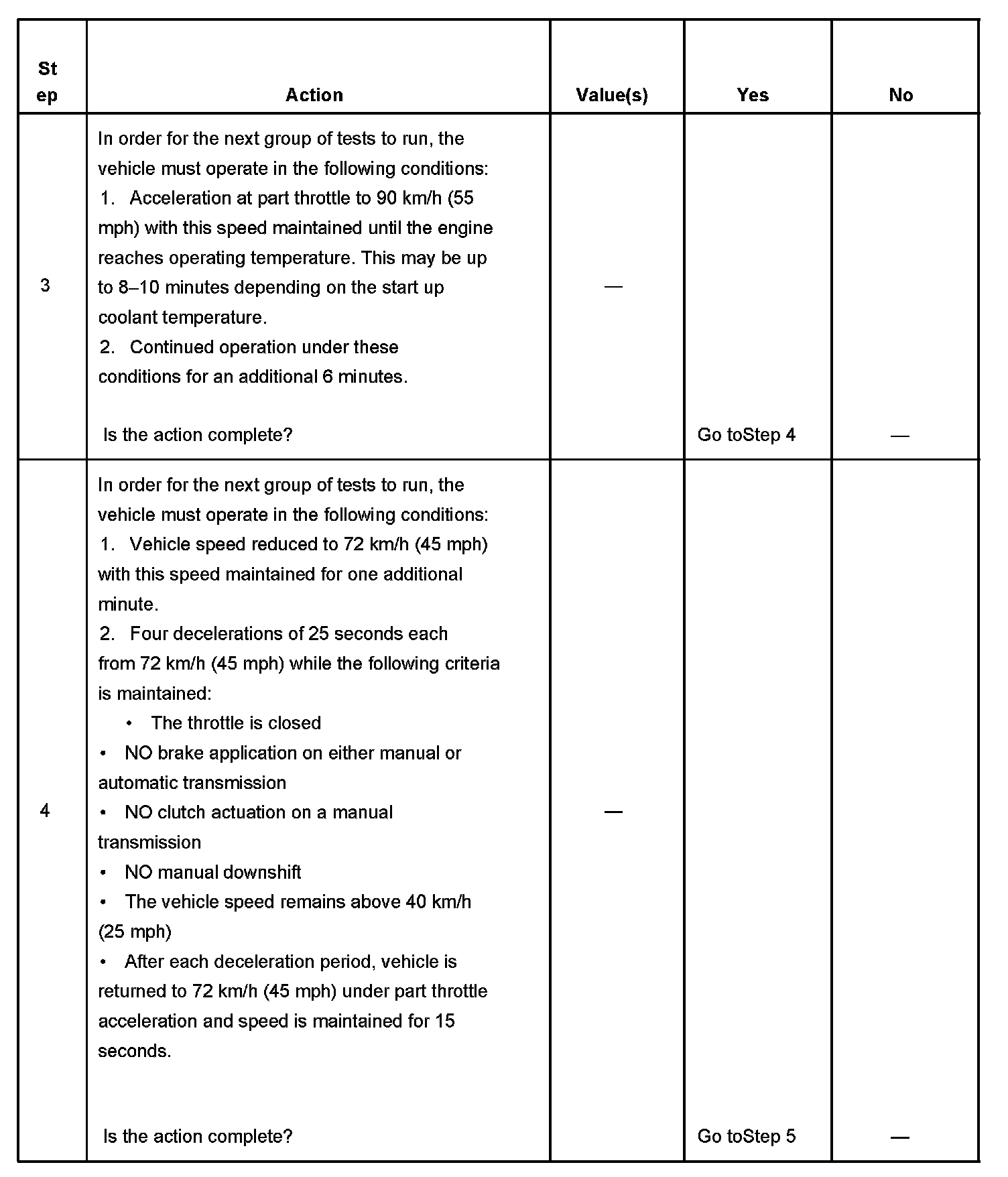 5. This step is to run the Catalyst Tests. This test runs during the idle period immediately following a cruise period that meets a minimum calibrated RPM and time period.
