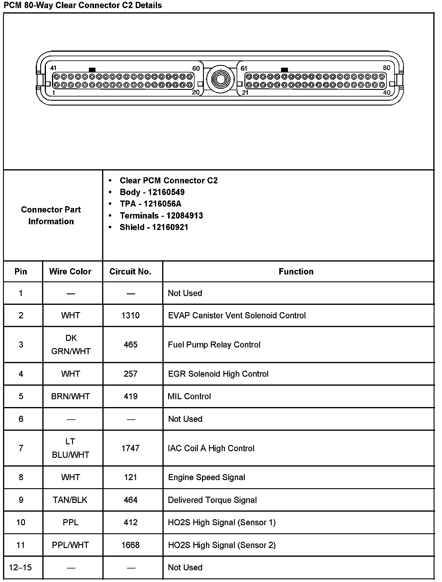 PCM 80-Way Clear Connector C2 Details Part 1: