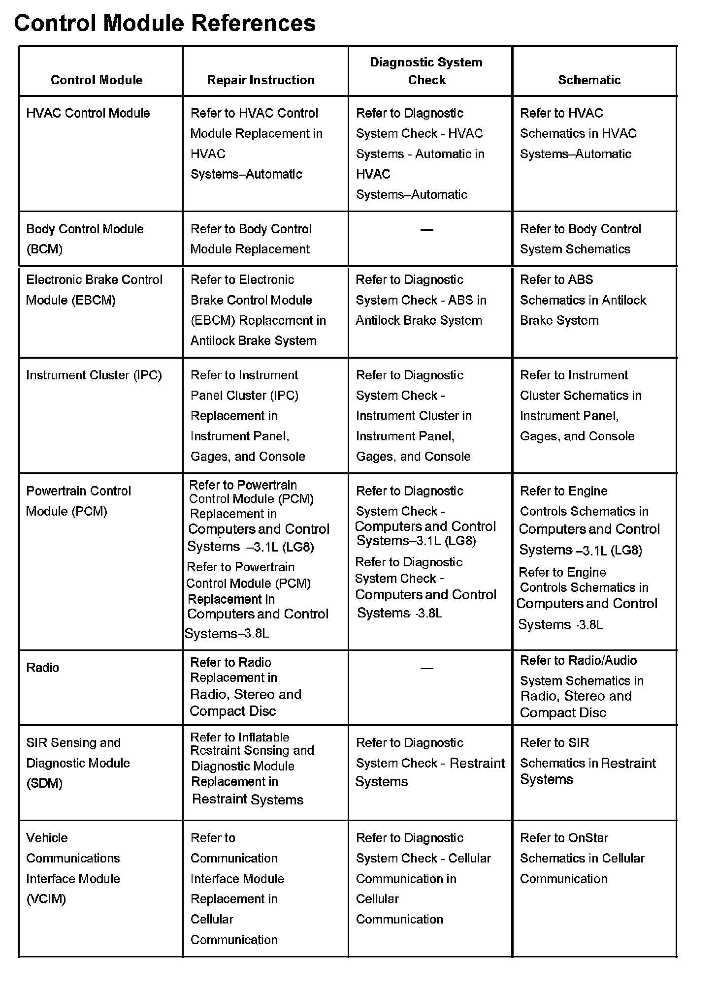 Control Module References