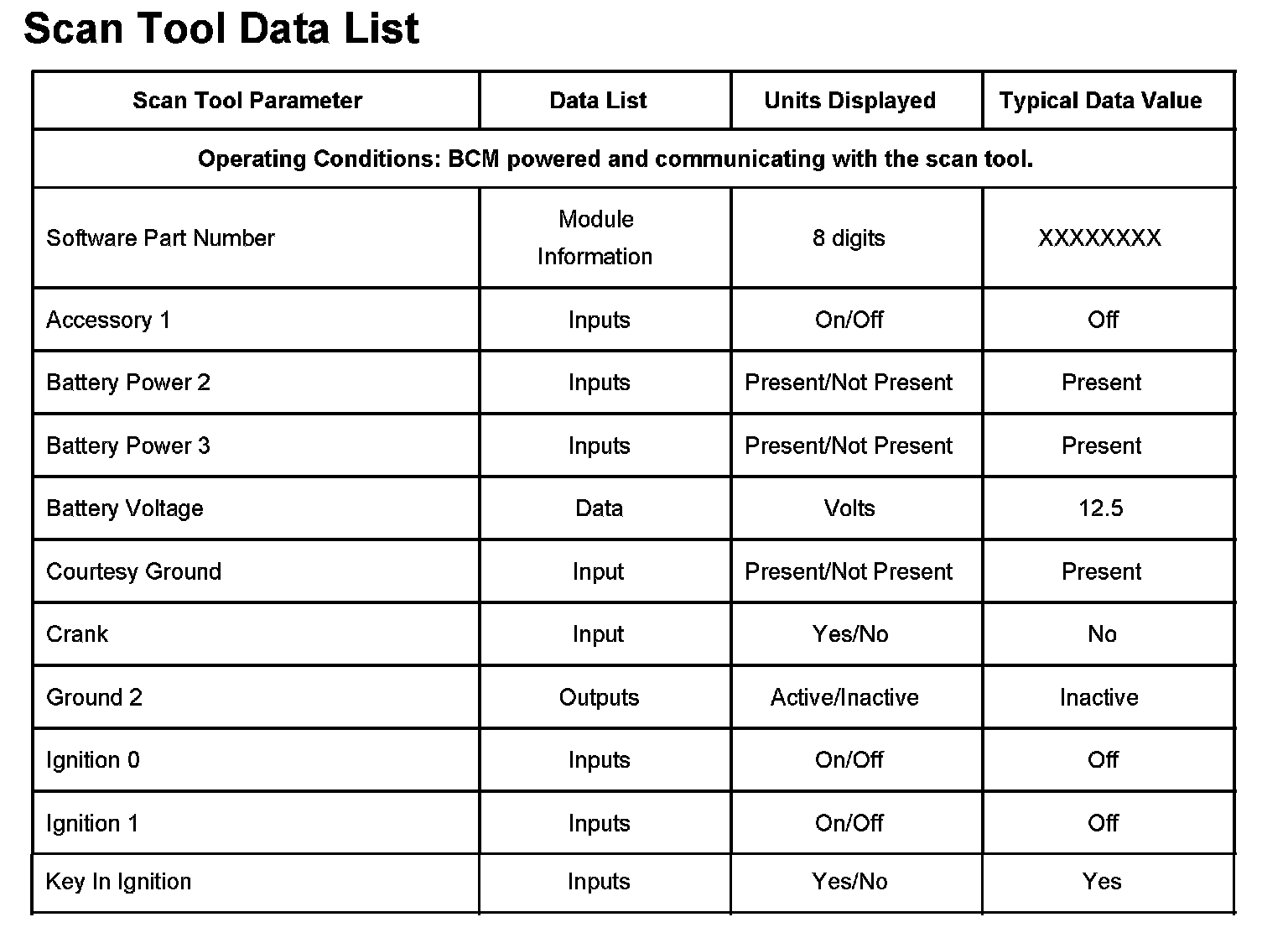 Scan Tool Data List: