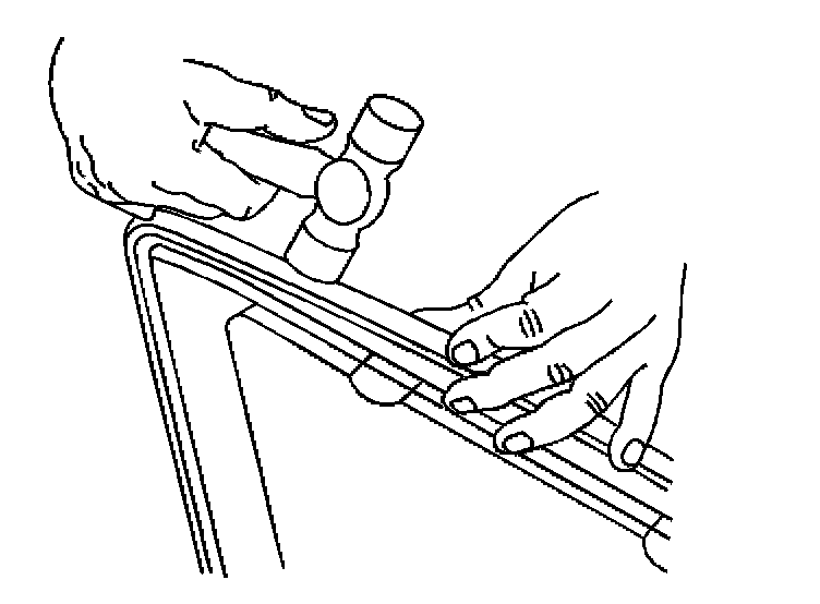1. Position the sunroof window panel seal onto the sunroof window panel frame.