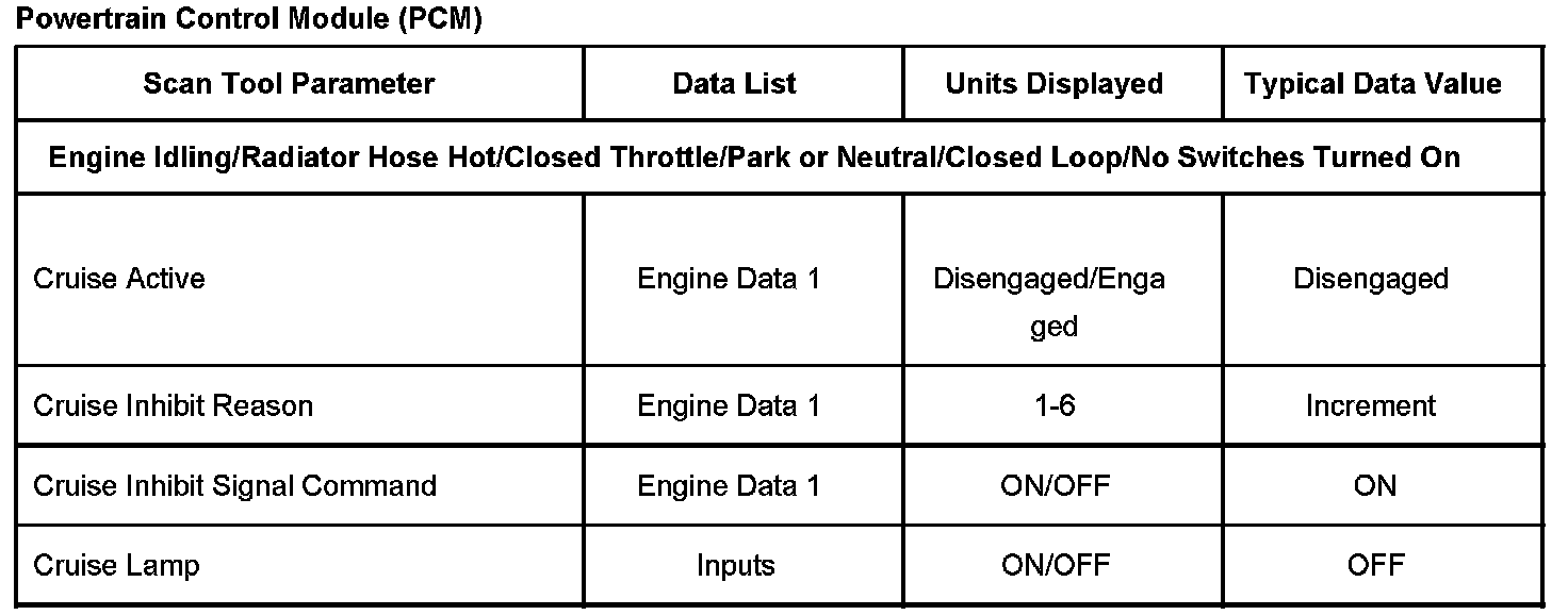 Scan Tool Data List - Powertrain Control Module (PCM)
