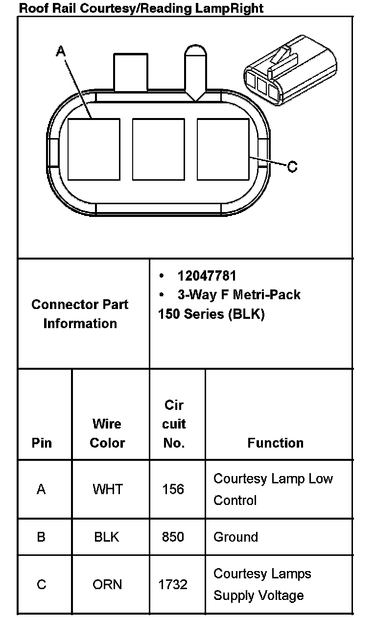 Roof Rail Courtesy/Reading Lamp - Right:
