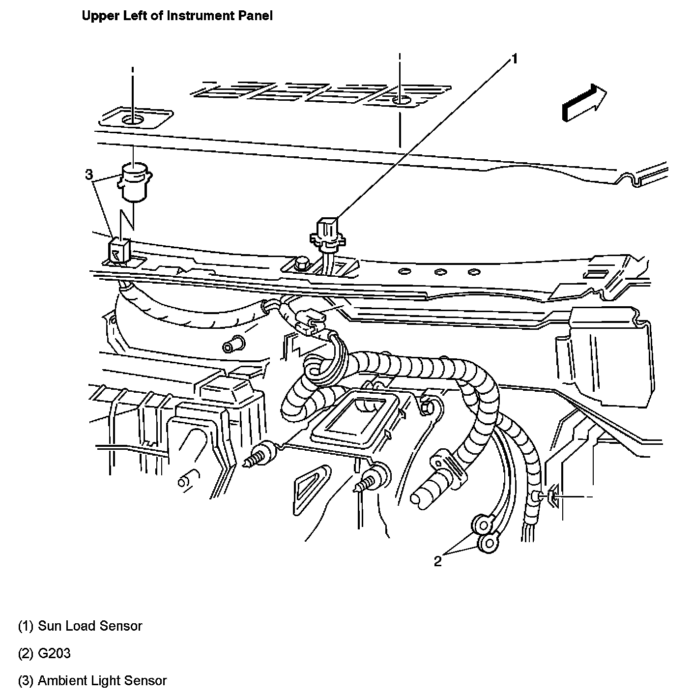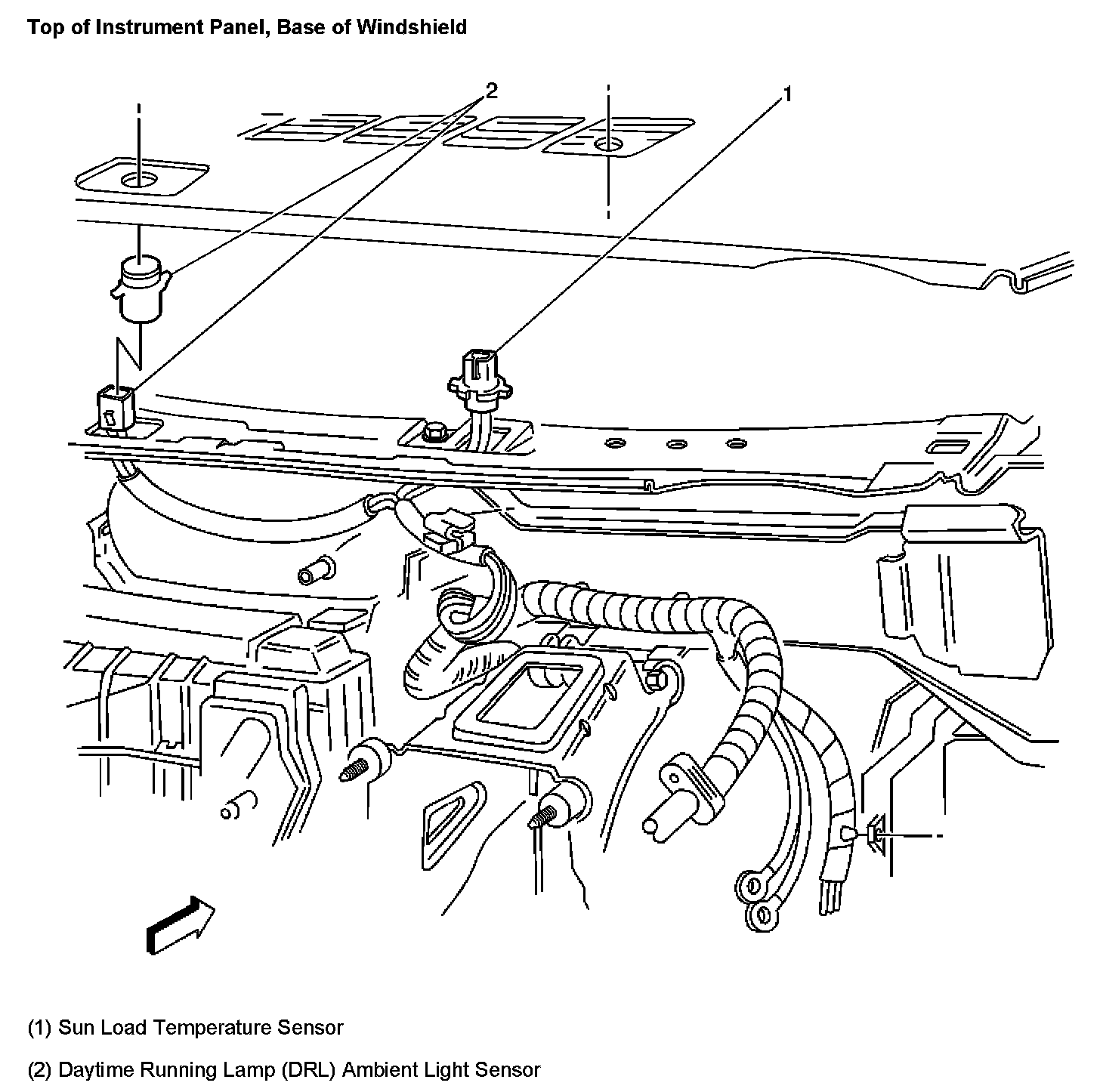 Top Of Instrument Panel, Base Of Windshield: