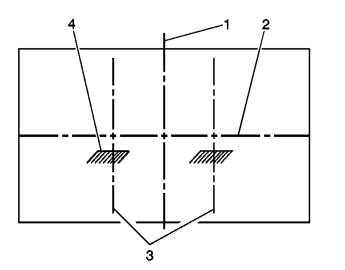 2. Measure from the center of the fog lamp to the ground line. Using this measurement, mark the horizontal centerline (2) of the fog lamp on the target screen directly in front of the vehicle.