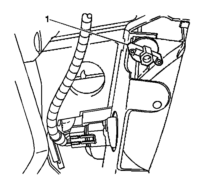 4. Reach under the rear lower edge of the front fascia to access the fog lamp vertical adjustment nut (1).