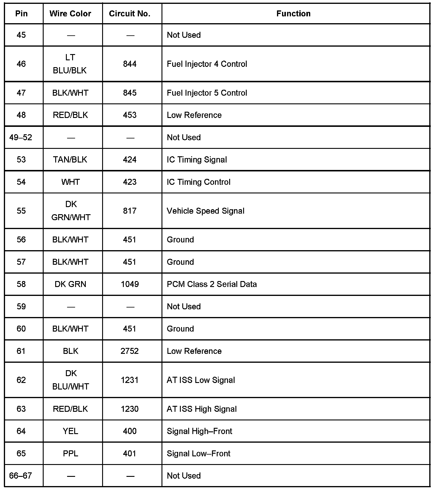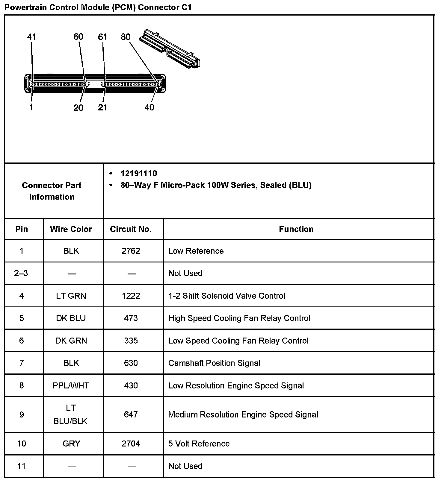 Powertrain Control Module (PCM) Connector C1 Part 4: