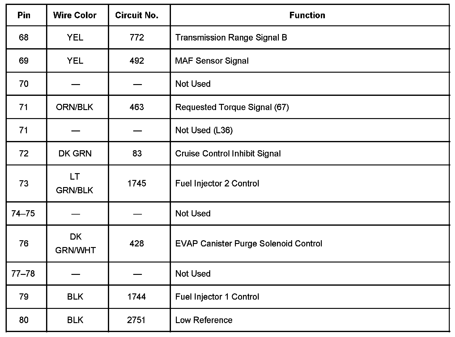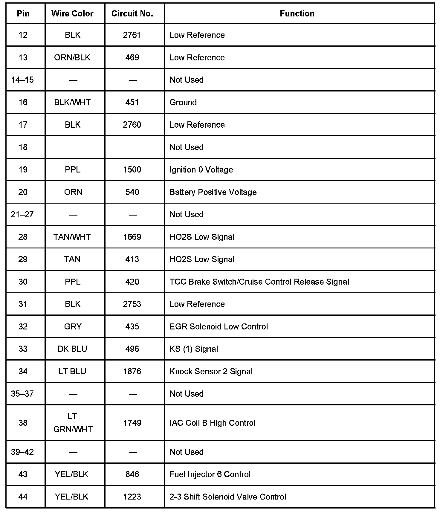 Powertrain Control Module (PCM) Connector C1 Part 2: