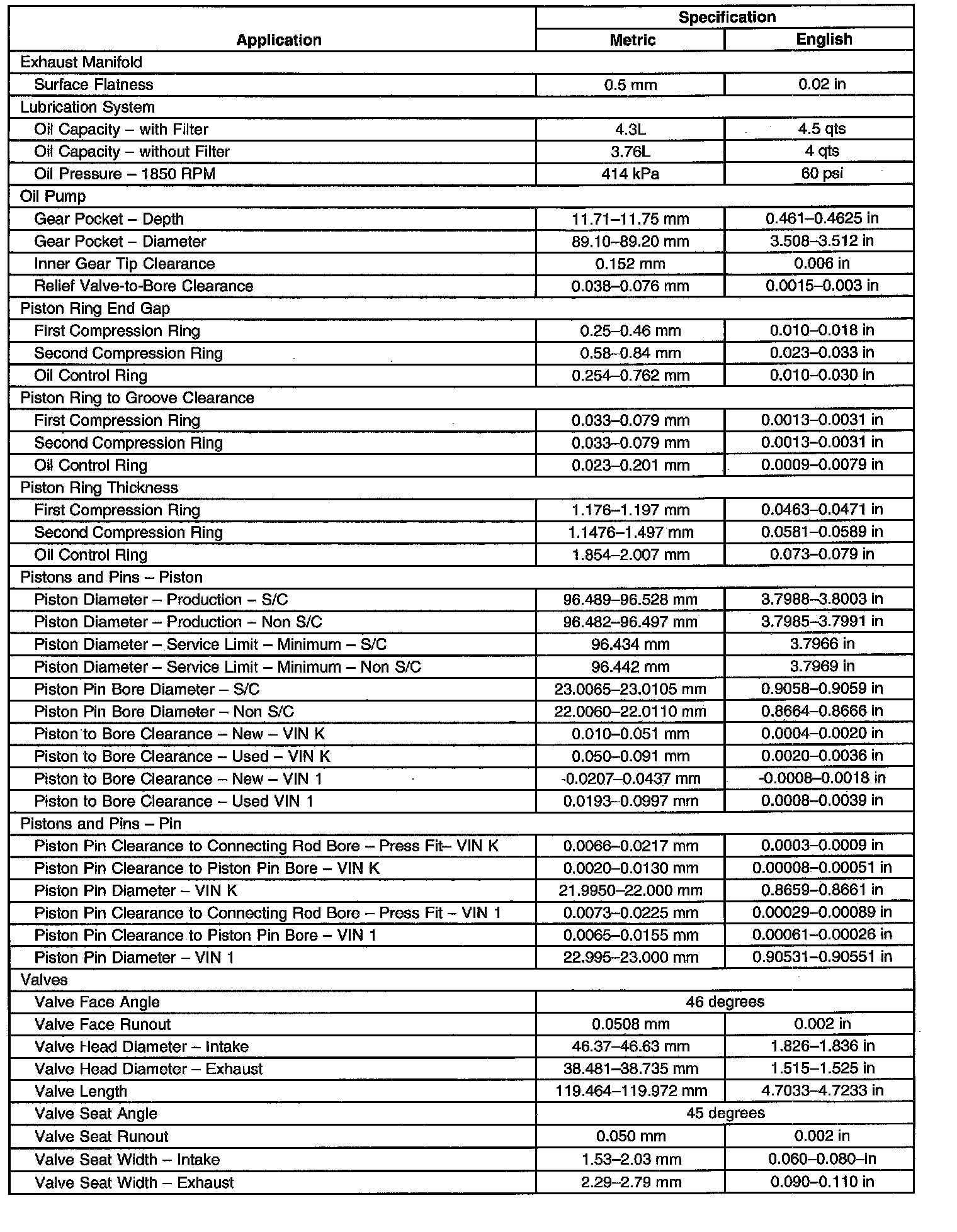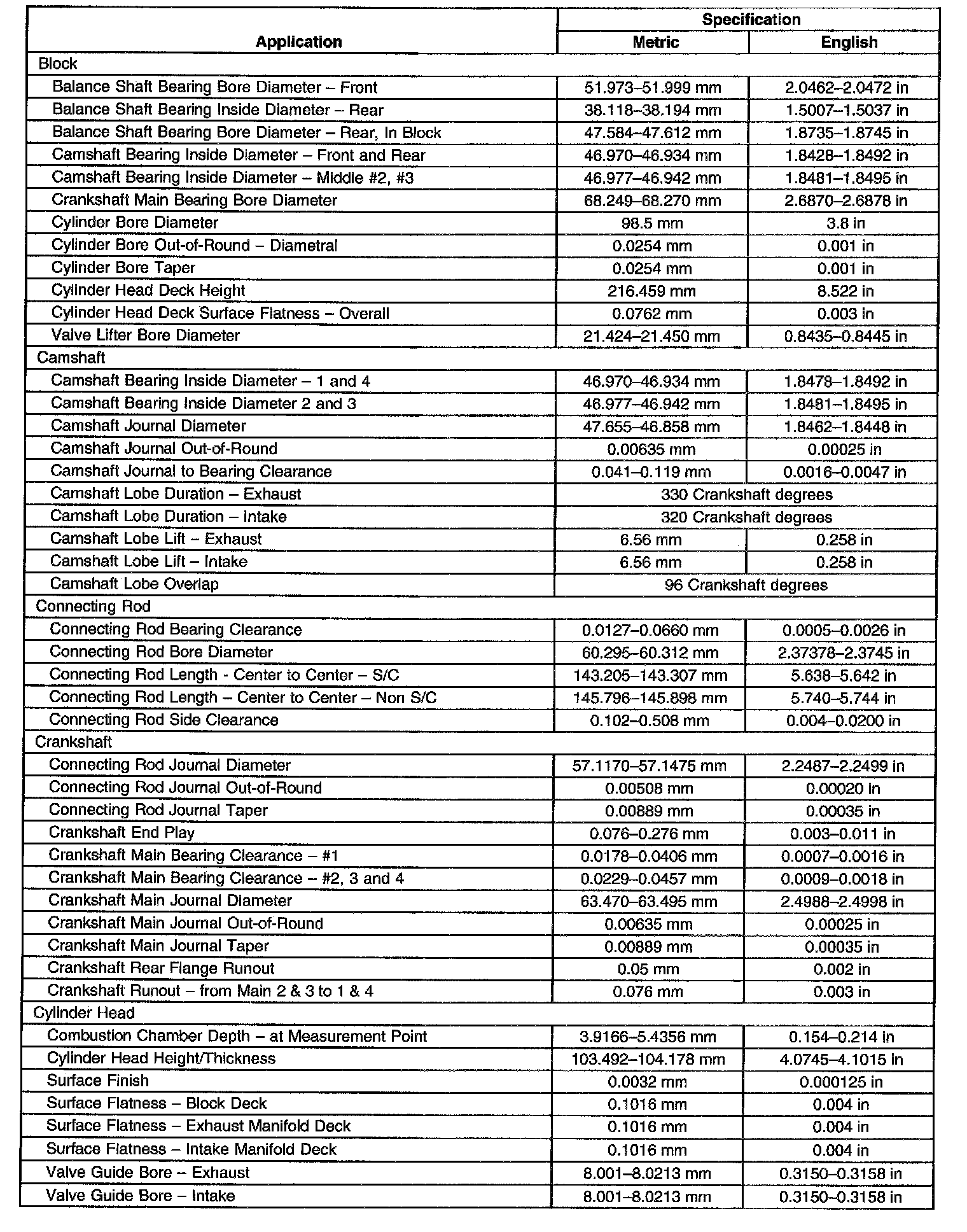 Engine Mechanical Specifications