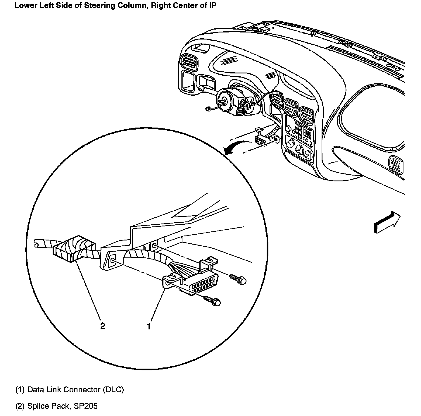 Lower Left Side Of Steering Column, Right Center Of IP:
