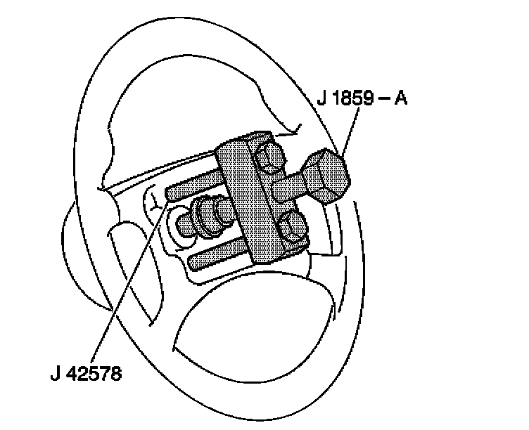 9. Remove J 1859- A and J 42578 from the steering wheel.