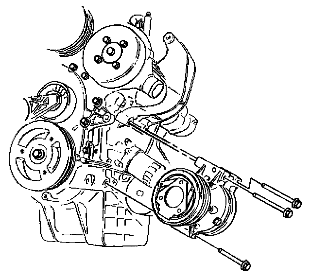 12. Remove the lower A/C compressor mounting bolts.