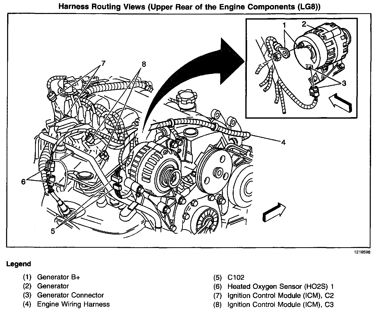 Harness Routing Views (Upper Rear Of The Engine Components):