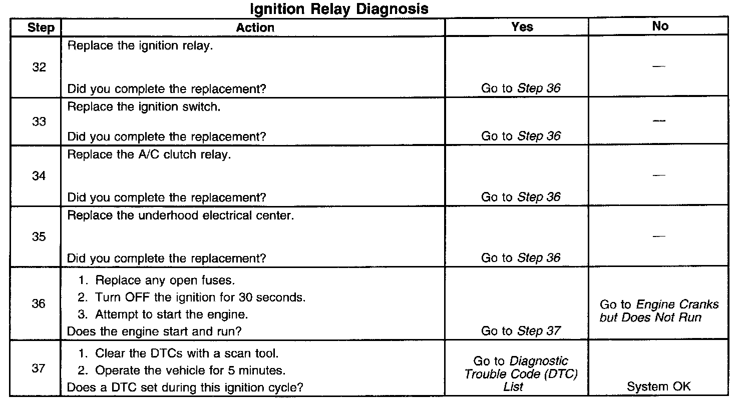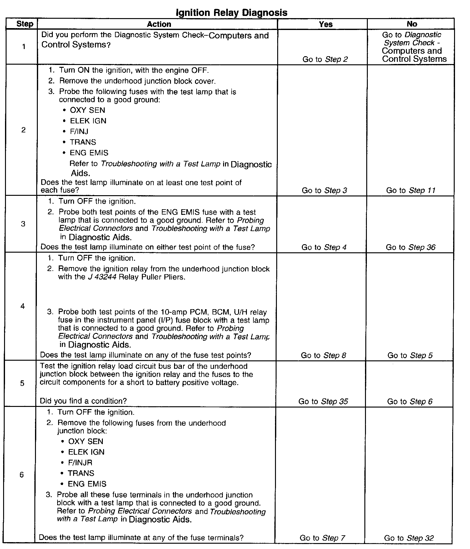 The ignition relay table assumes that the vehicle battery is fully charged.