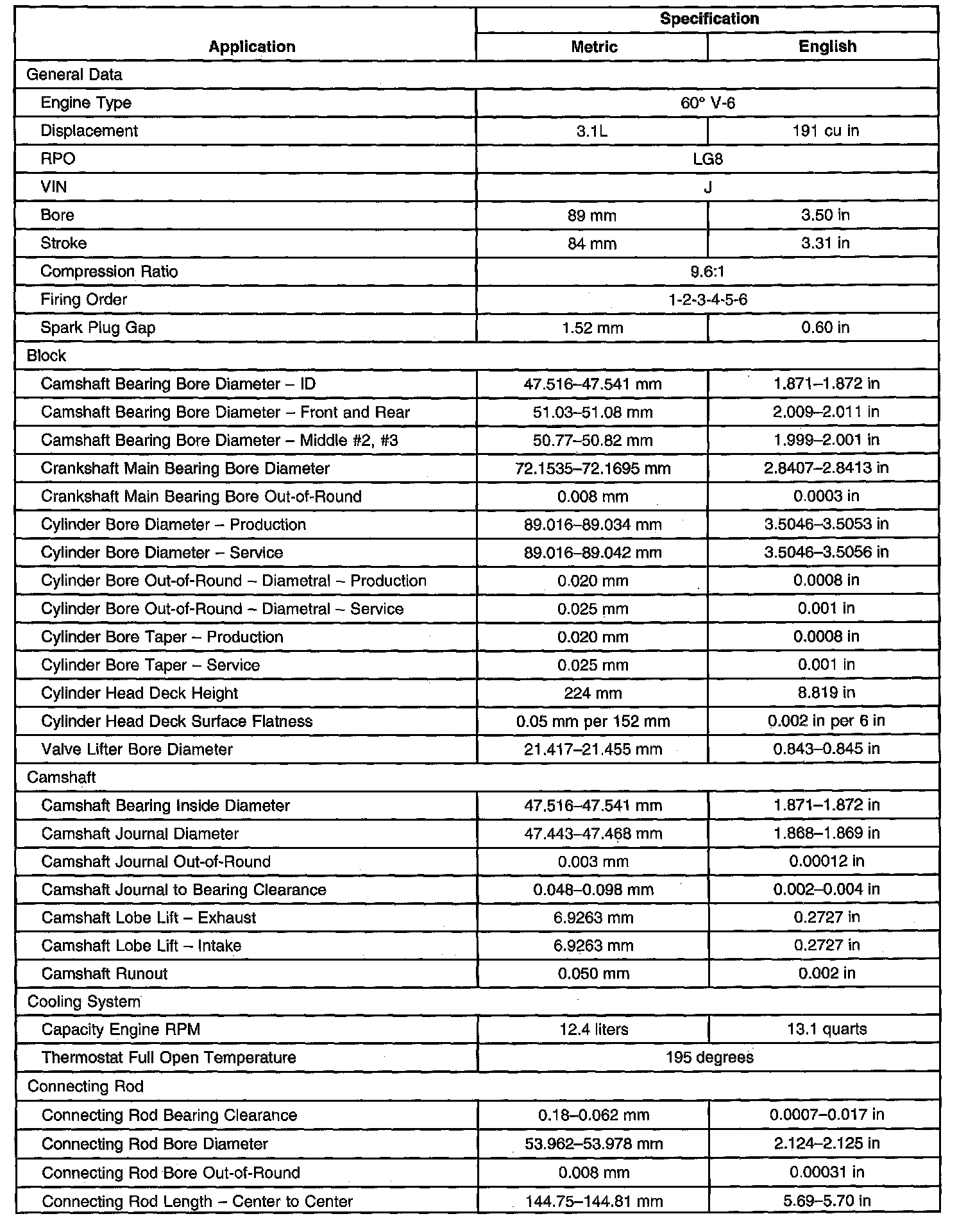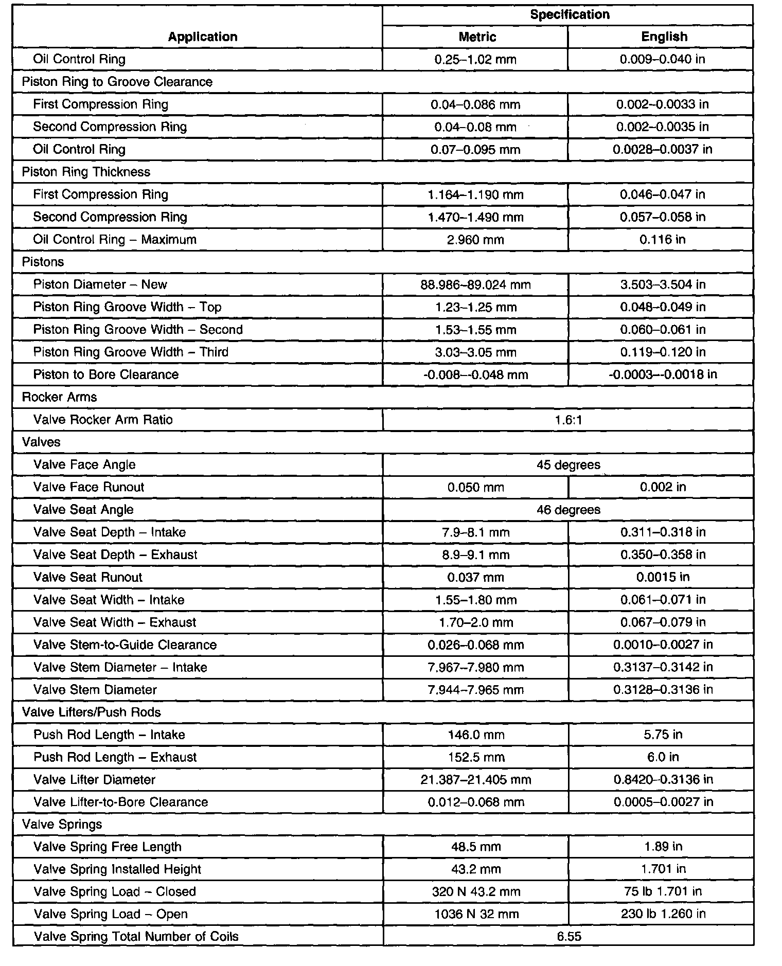 Engine Mechanical Specifications