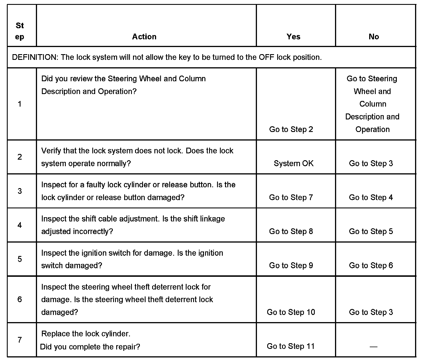 A/T Shift Lock, Lock System Does Not Lock