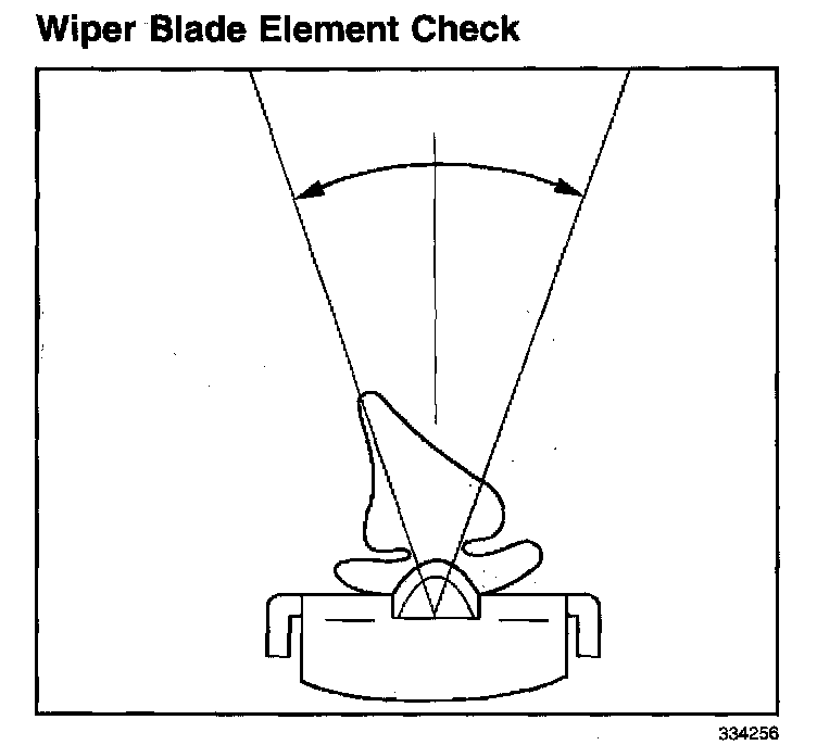 3. Replace the wiper blade element if the rubber element which contacts the glass is deflected more than 15 degrees from the centerline of the blade.