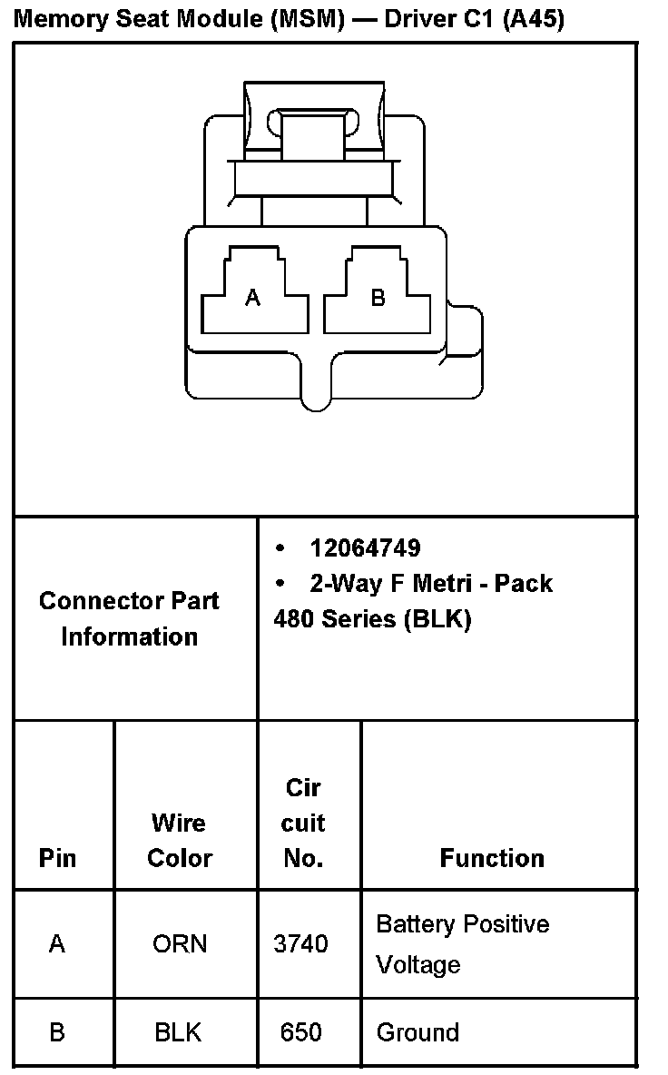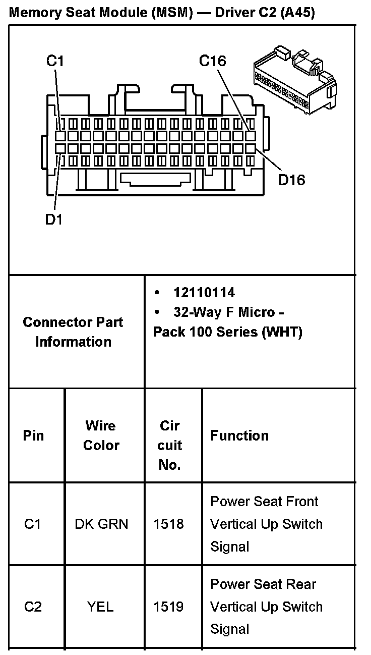 Memory Seat Module (MSM) - Driver C2 With RPO Code A45 Part 2:
