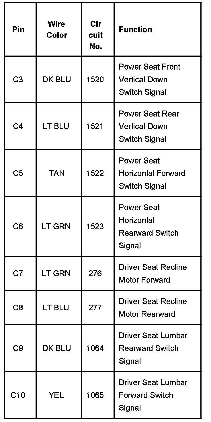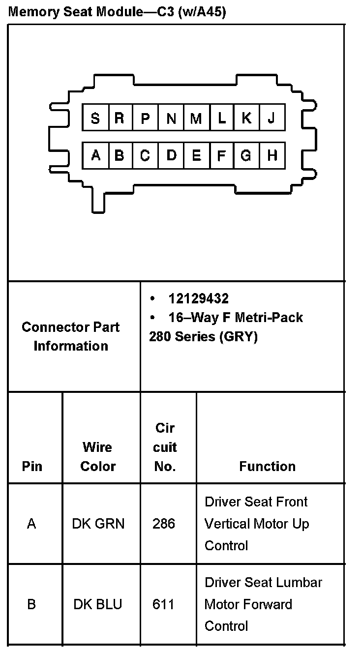 Memory Seat Module (MSM) - Driver C2 With RPO Code A45 Part 3: