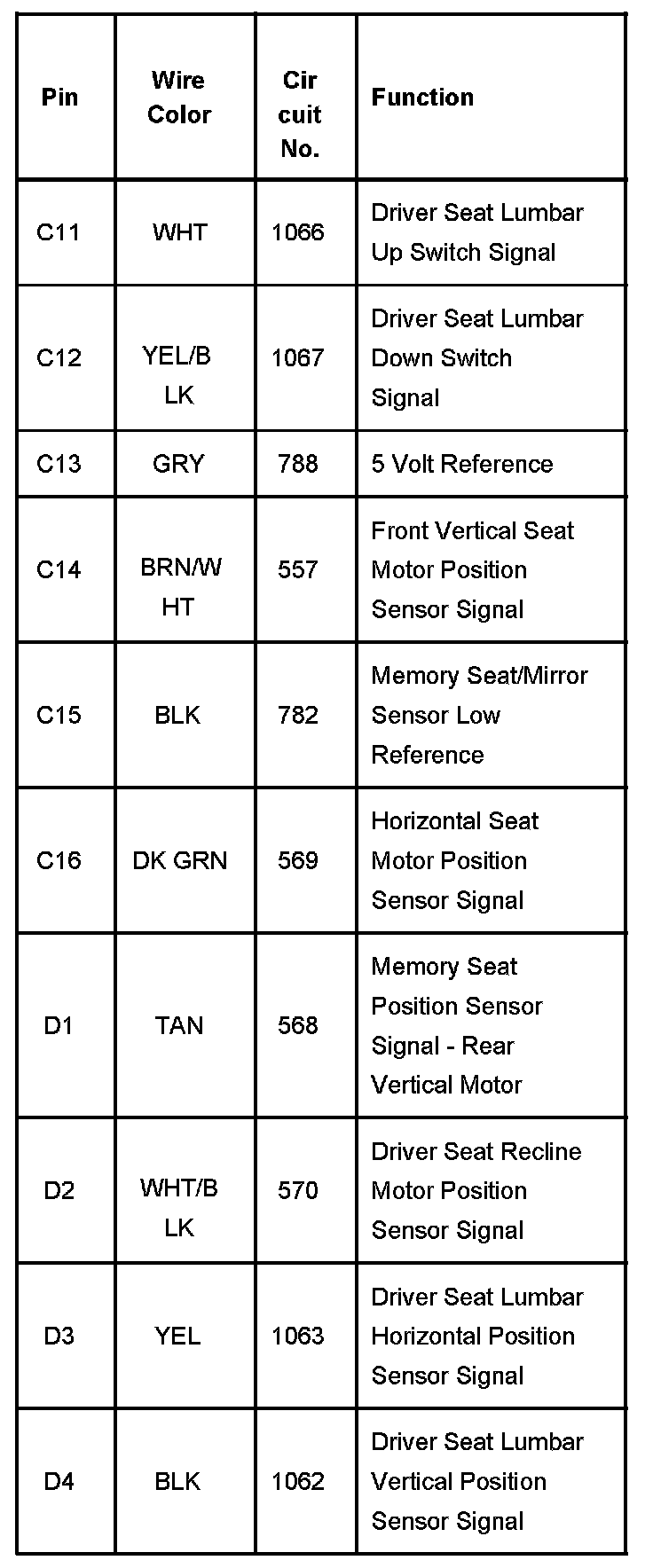 Memory Seat Module (MSM) - Driver C2 With RPO Code A45 Part 4: