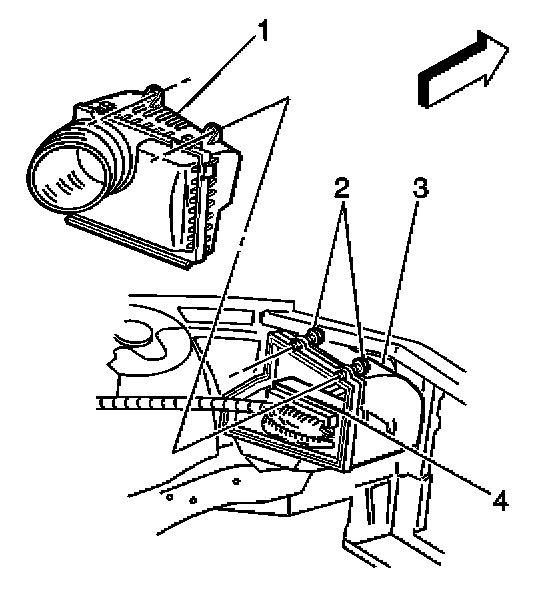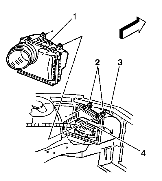 2. Carefully reinstall the PCM (3) and harness into the PCM housing (2).