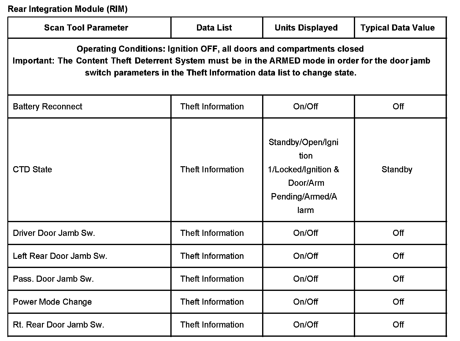 Scan Tool Data List - Antitheft System