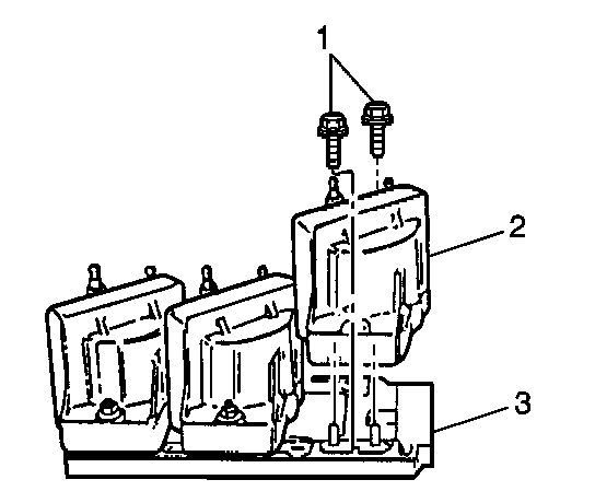 1. Attach the coils (2) and the ignition control module (3) to the bracket.