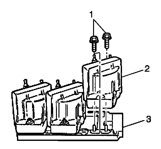 5. Remove the coils (2) and the ICM (3) from the bracket.
