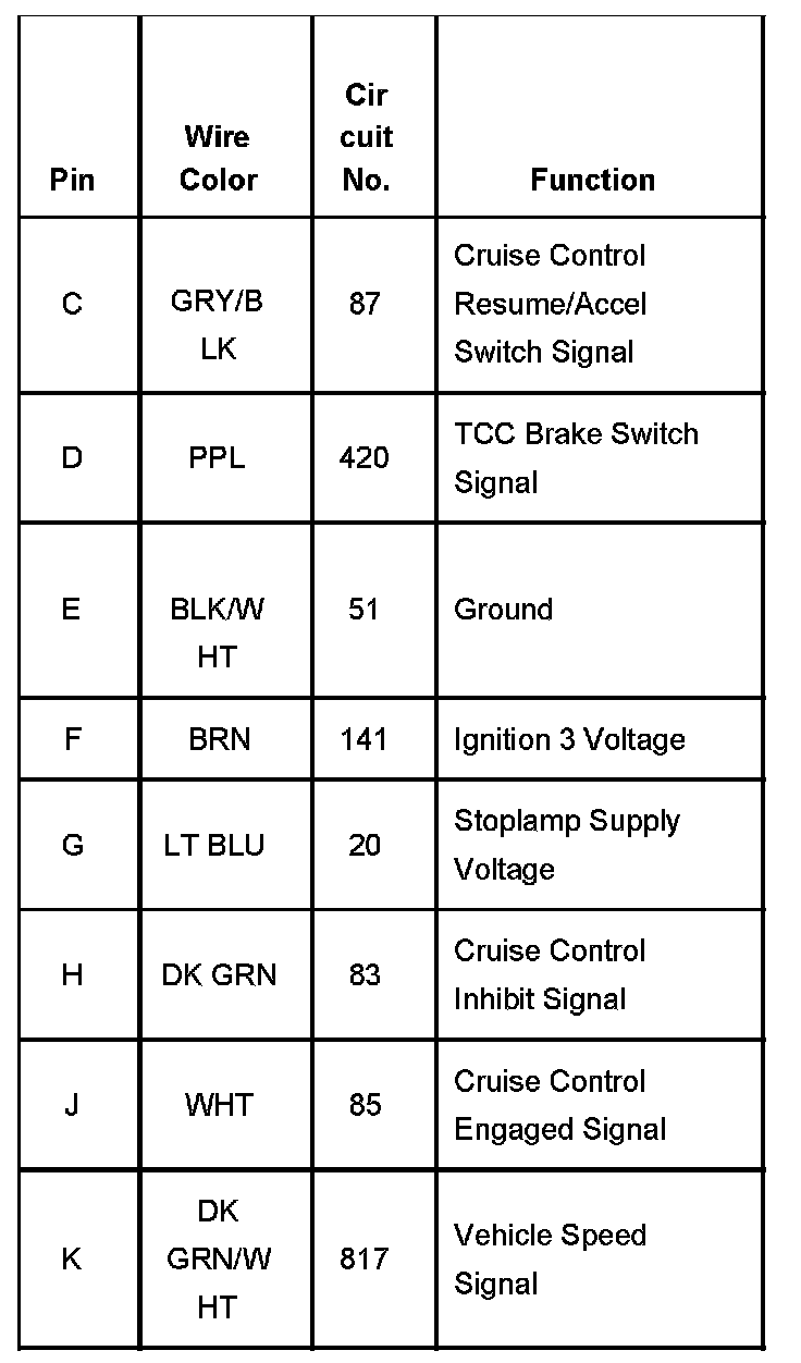 Cruise Control Module: Diagrams