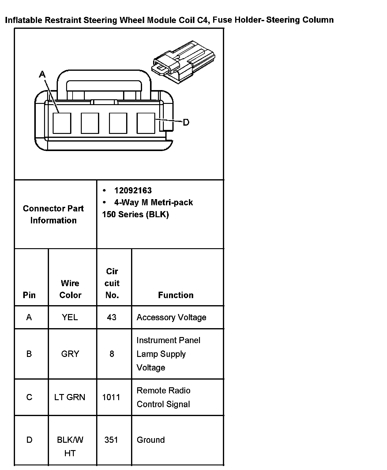 Inflatable Restraint Steering Wheel Module Coil C4, Fuse Holder- Steering Column: