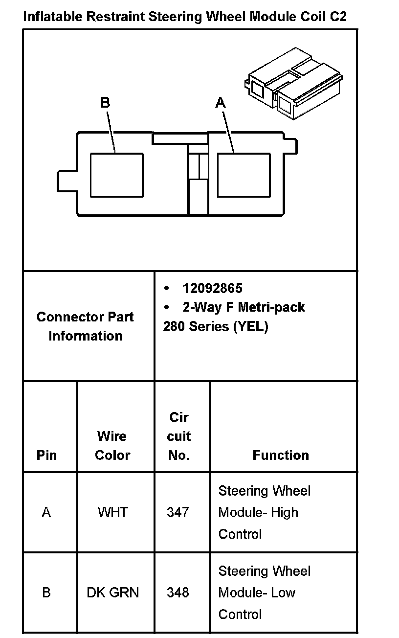 Inflatable Restraint Steering Wheel Module Coil C2: