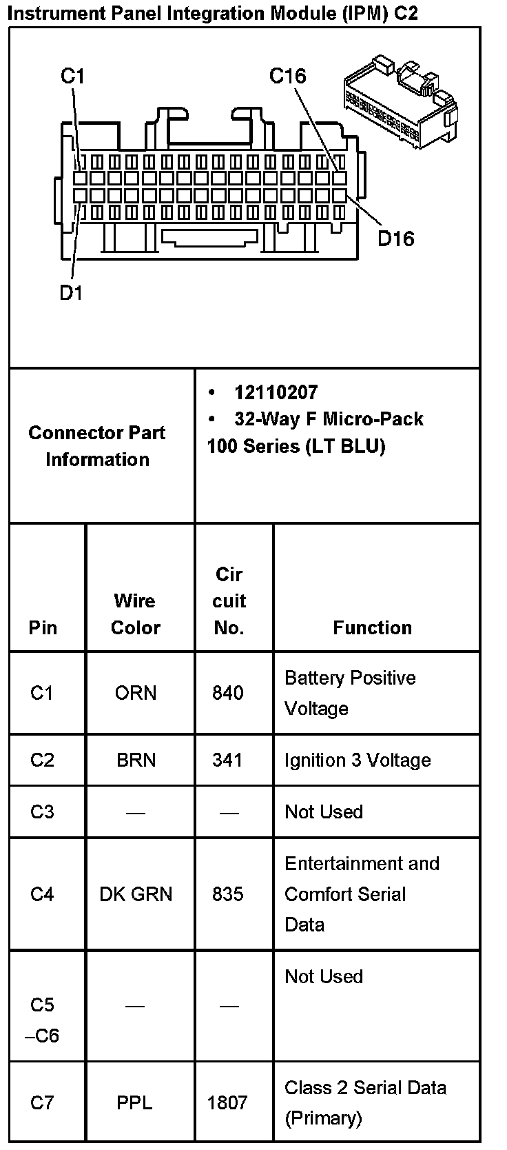 Instrument Panel Integration Module (IPM) C2 Part 3:
