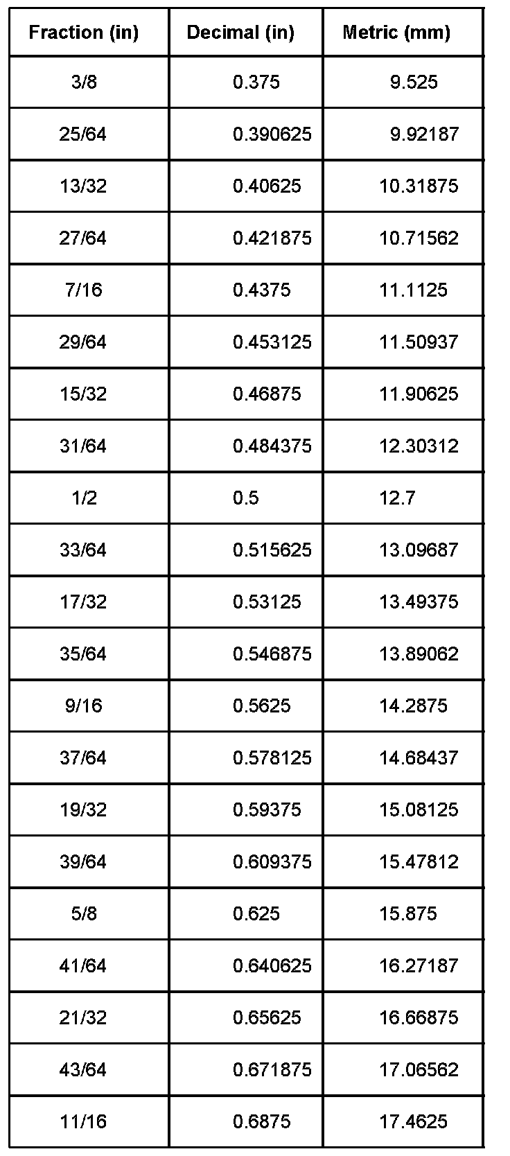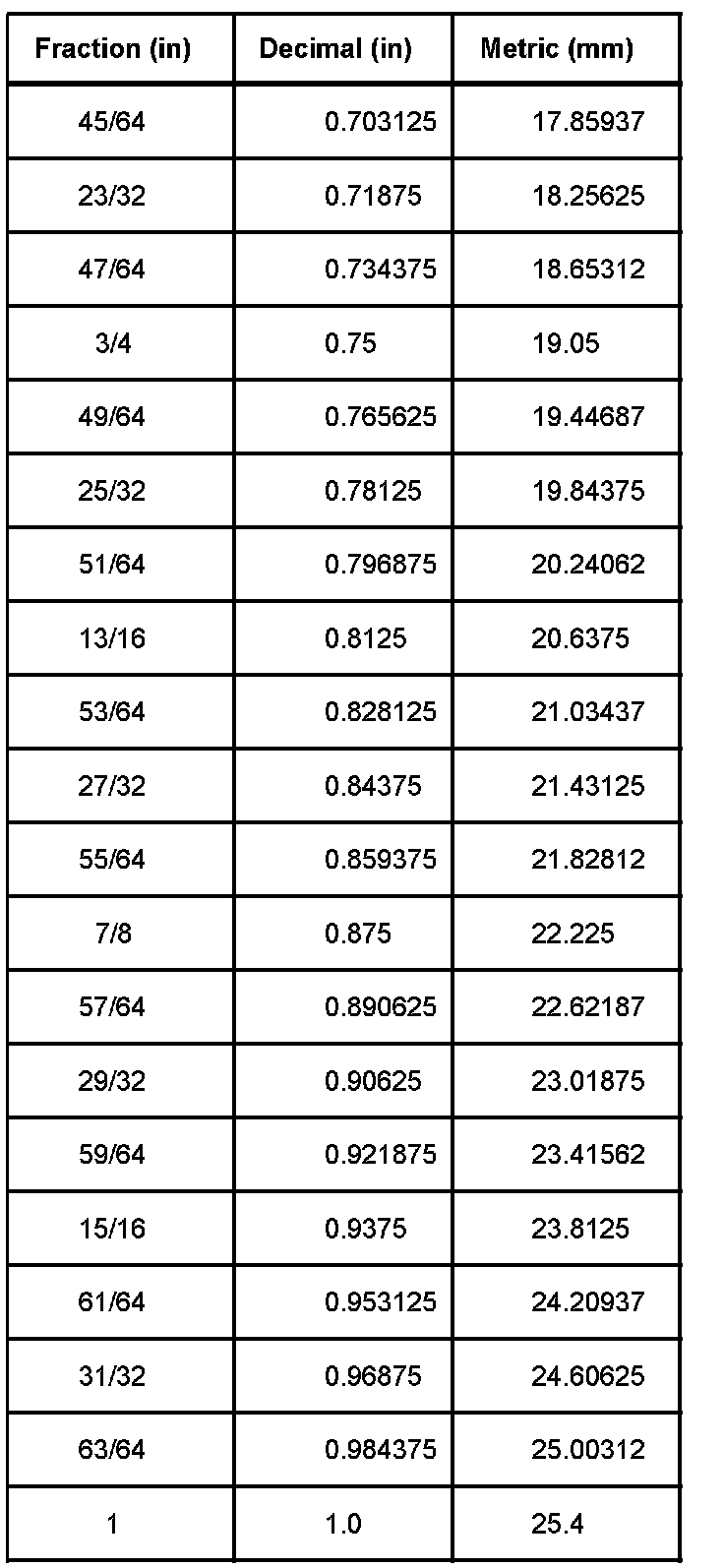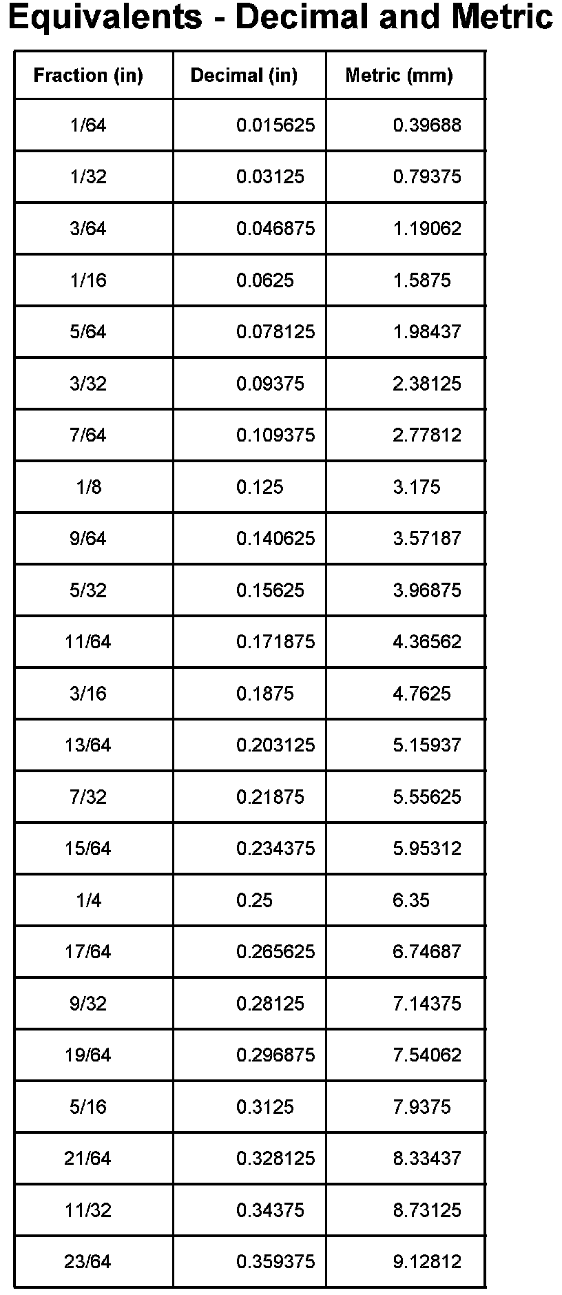 Equivalents - Decimal And Metric