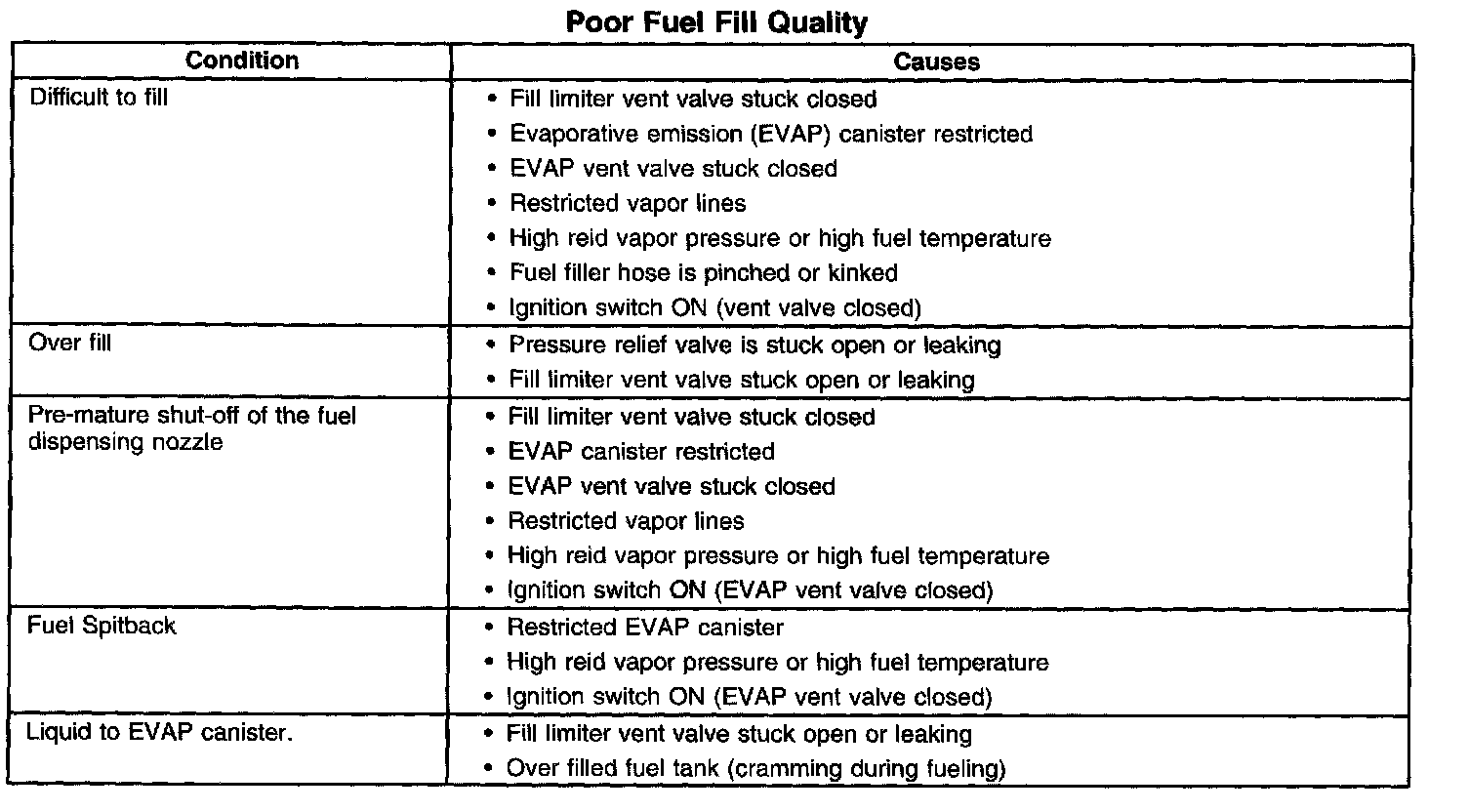 Poor Fuel Fill Quality