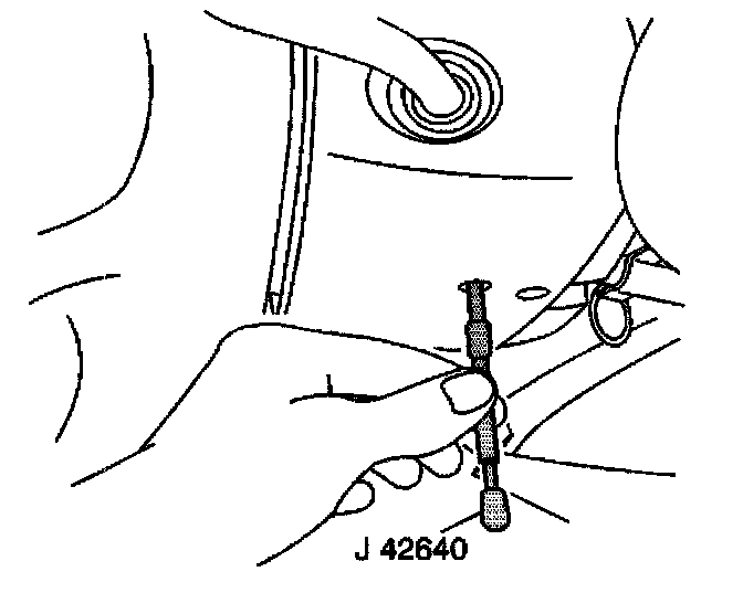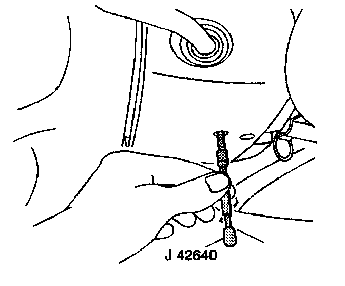1. Lock the steering column by installing J 42640 into the underside of the steering column.