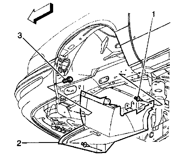 13. Remove the left inner wheelhouse filler (2).