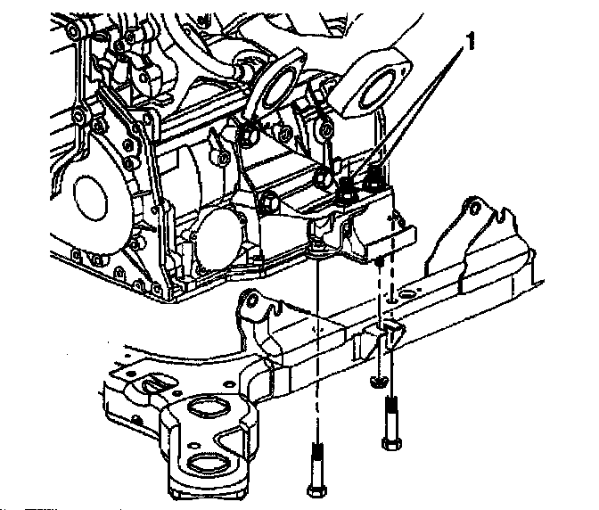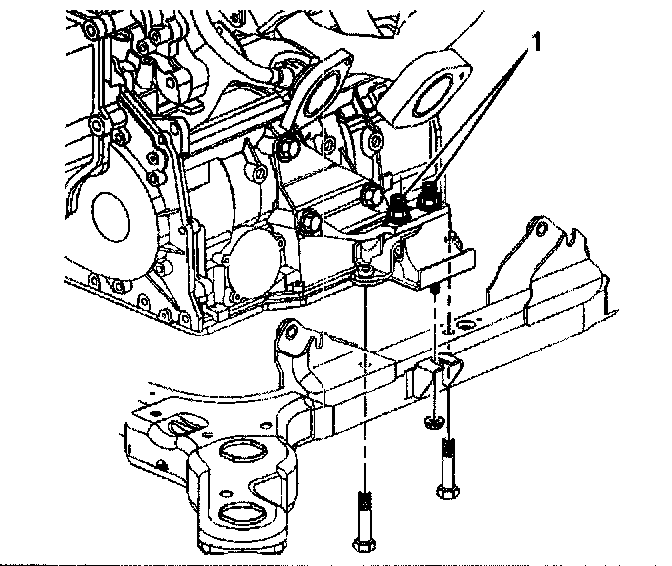 17. Install the two lower bolts and lower nut onto the rear transaxle mount (1).
