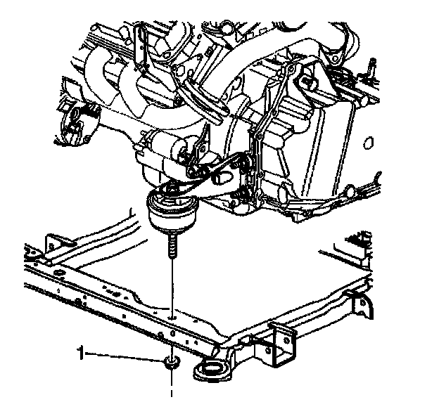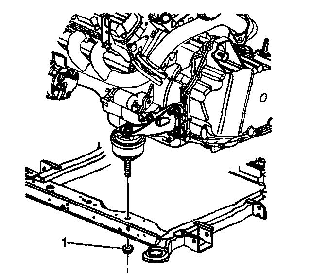 16. Install the lower nut (1) onto the front transaxle mount.