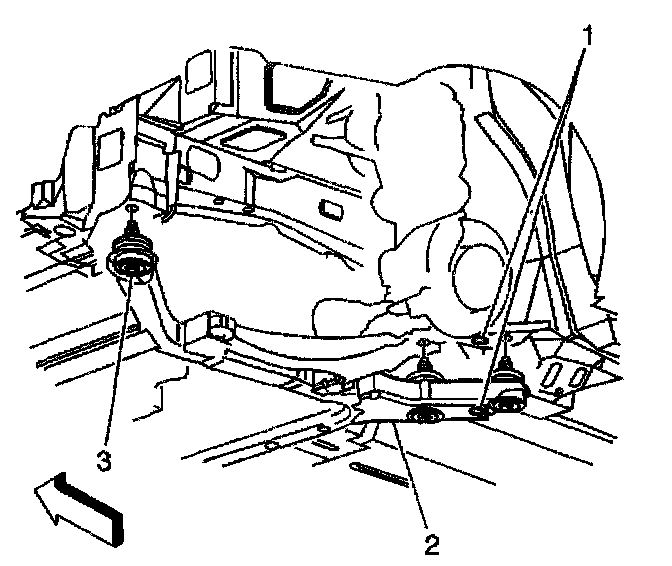 34. Remove the three frame-to-body bolts (3) on the left side.