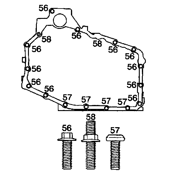- Nine case side cover bolts (56)