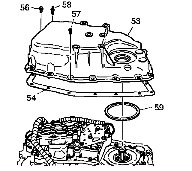 4. Install the case side cover gasket (54) and case side cover (53) onto the case. Make sure the gaskets and electrical connector are positioned correctly.