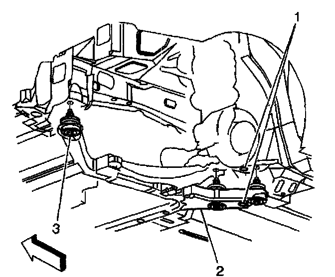 14. Install the frame-to-body bolts (3).