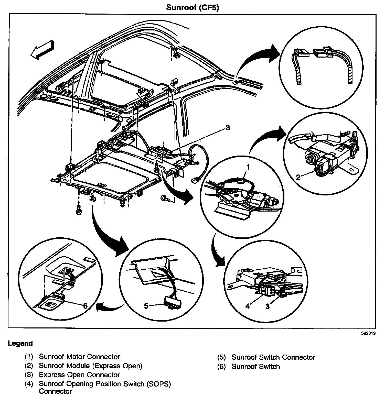 Sunroof / Moonroof Module: Locations